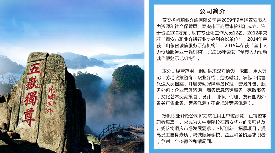 1、泰安揚(yáng)帆職業(yè)介紹有限公司某國(guó)有企業(yè)招聘,詳情請(qǐng)看下方第一個(gè)公告
